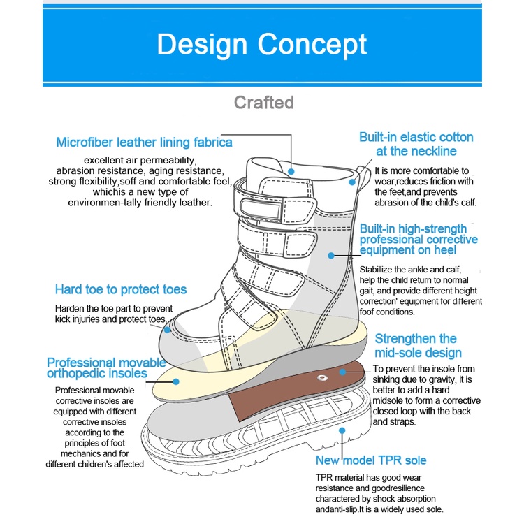 Niños Zapatos De Niño Botas Ortopédicas De Cuero De Becerro Para Correa Clubfoot Booties Con Suela De Arco Extraíble